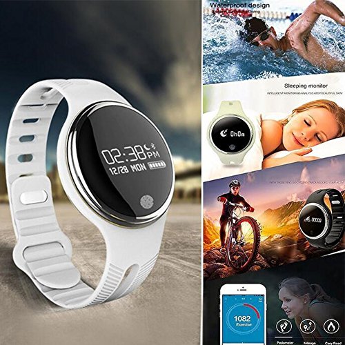 JP-川子 Bluetooth対応 スマートブレスレットスマートウォッチ E07 丸形デジタル腕時計 日本語対応 ブルートゥース iPhone Android対応 (ホワイト)